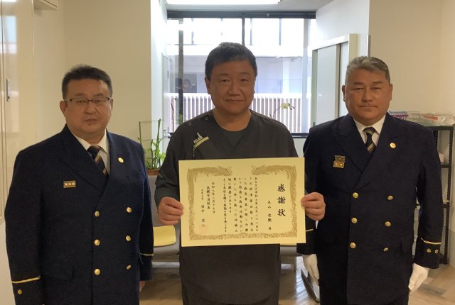 本市消防本部は、この功績を称え、令和8年2月17⽇に、消防⻑から丸山栄勲さんへ感謝状を贈呈しました。
