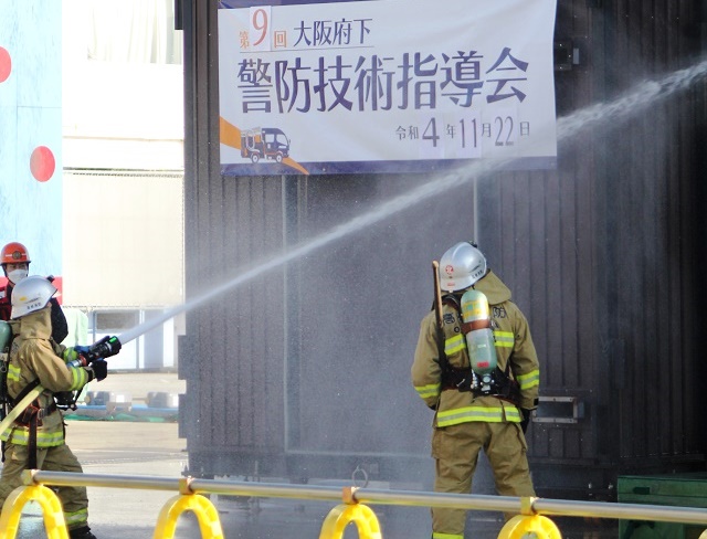 令和4年11月22日(火)に大阪市消防局高度専門教育訓練センターにおいて、第9回大阪府下警防技術指導会が開催され、本市からは北消防署隊が出場しました。