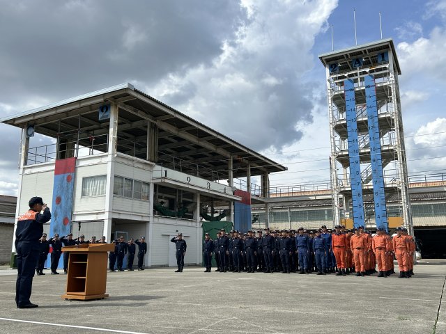 大阪府下の消防本部から集結した隊員が出隊式終了後、派遣先の石川県輪島市へ向け出発しました。