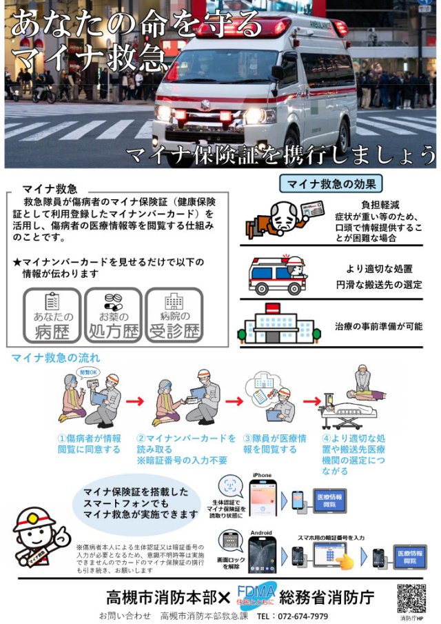 119番通報での救急車要請時、指令員よりマイナ保険証のご準備をお願いする場合がありますので、ご理解・ご協力のほどよろしくお願いいたします。