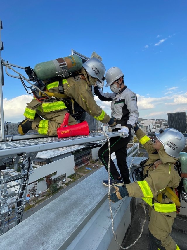秋季全国火災予防運動中に太陽ファルマテック株式会社高槻工場において消防訓練を実施しました(中消防署)