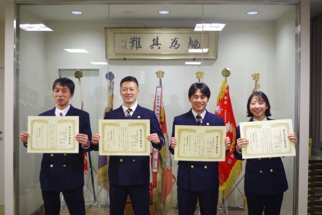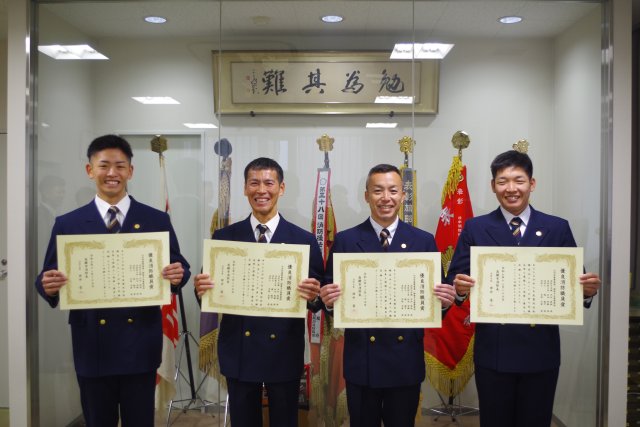 堀田消防司令補(隊長) 薮内消防士長(機関員) 河野消防士(隊員) 冨田消防士(隊員)