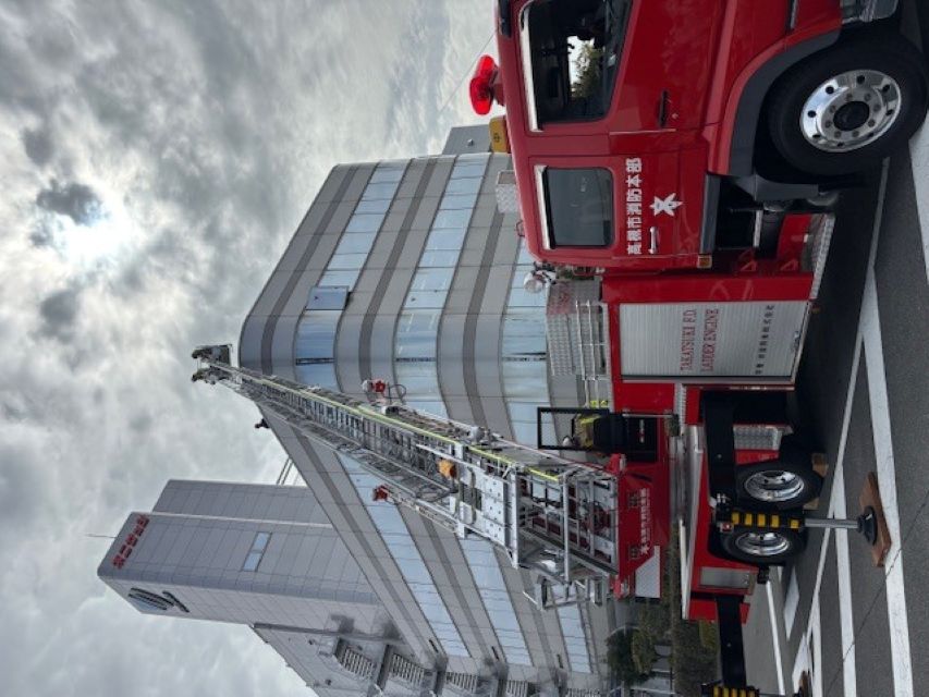 はしご車で要救助者を助けに行きます。