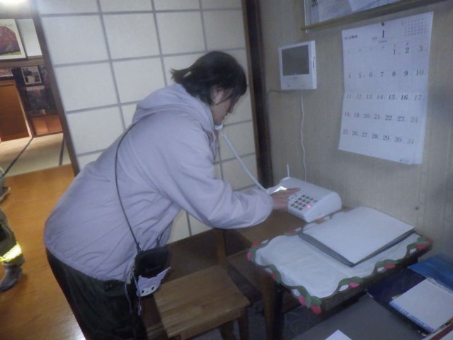 1月14日に慶瑞寺にて消防訓練を実施しました。寺関係者が通報訓練を実施しています。